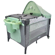 Incluye: cambiador removible, cuenta con arnés de seguridad de dos puntos y soporta hasta 9 kg y un organizador con tres compartimientos para tener todo lo necesario cerca.